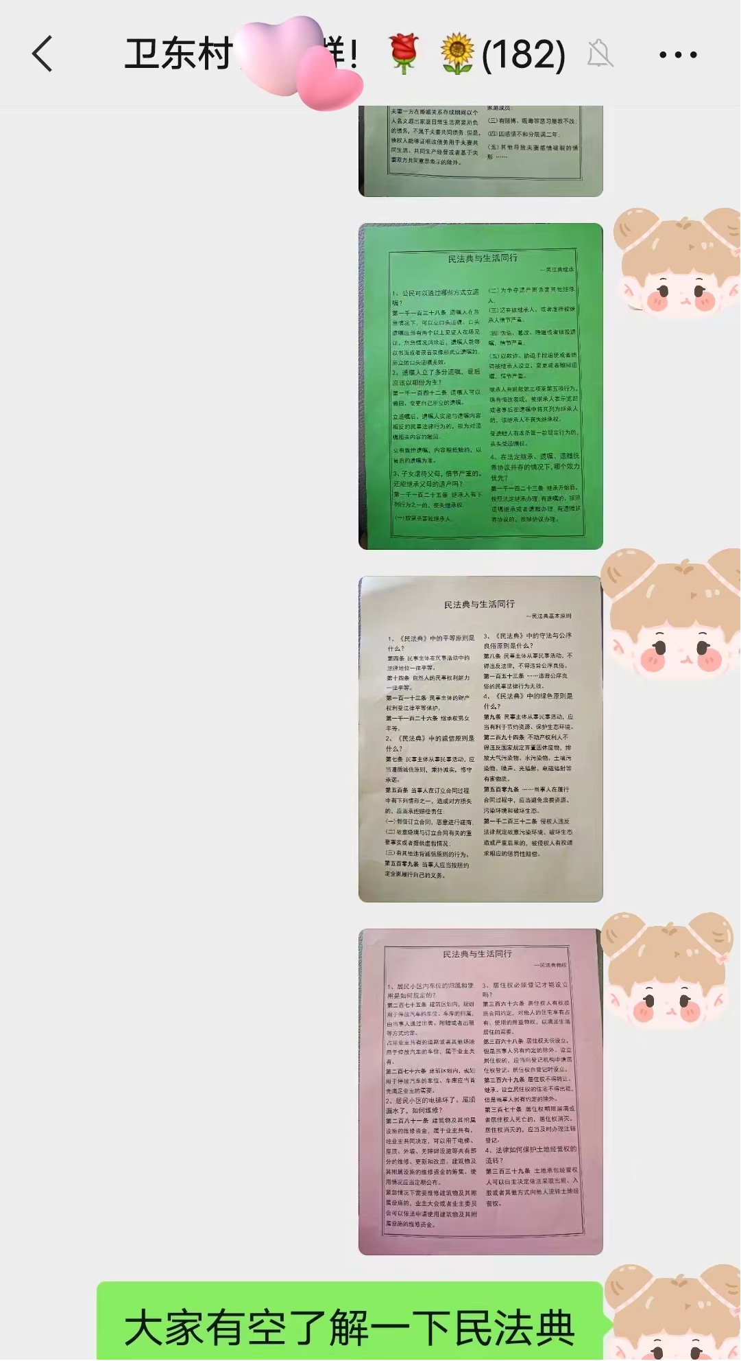 为扩大民法典的社会知晓度,我院采用“线上+线下”联动,密织普法宣传网。依托社区、村微信群向群众普及民法典知识,以生动的案例、鲜活的语言,传播民法典知识、阐释民法典精神。依托“微秀萝北”微信公众号,开展“科普大讲堂”说民法典活动,着重讲解了民法典继承篇。